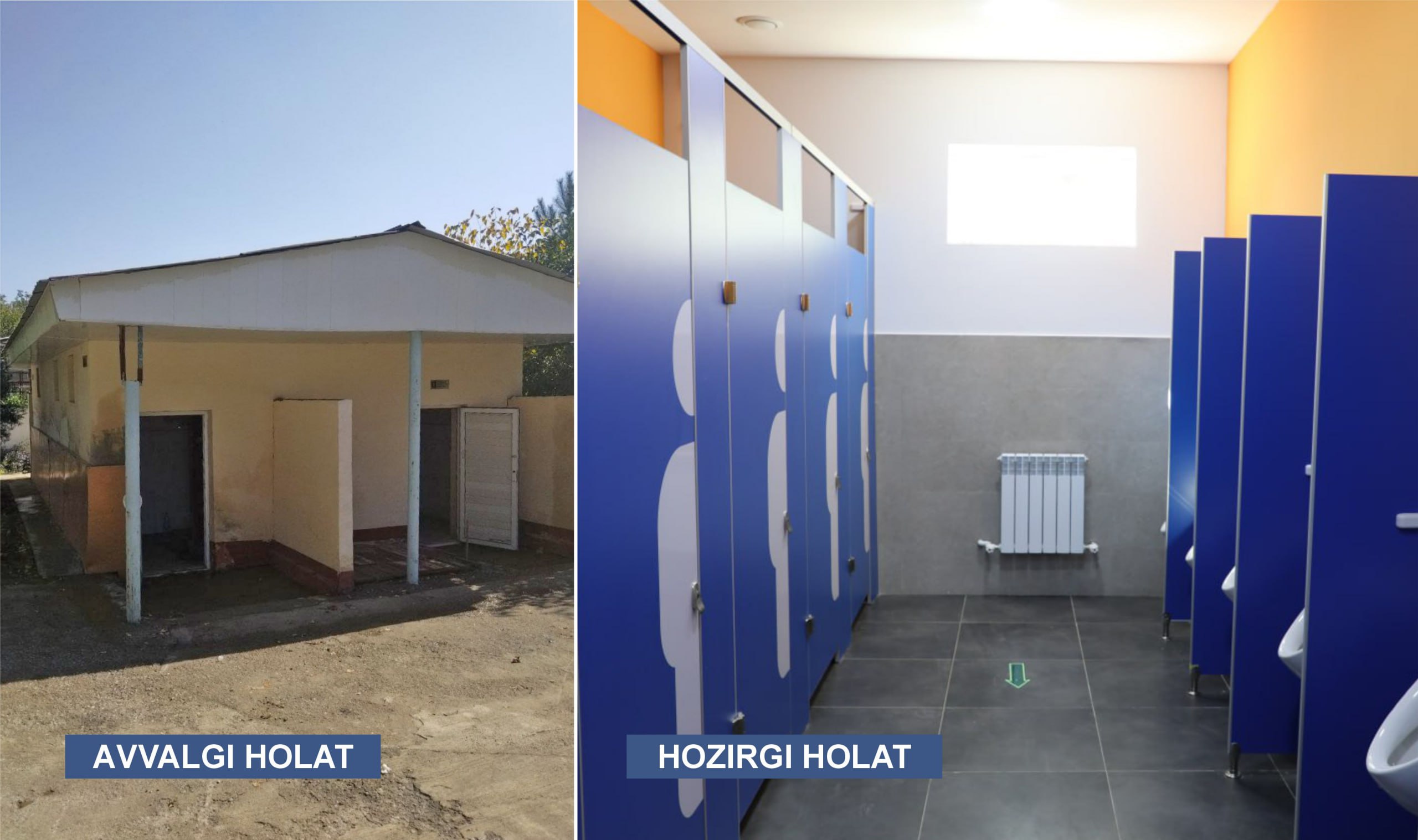 Bo‘stonliqda qurilgan inshoot shunday ilk loyihadir. Ilgari maktab hojatxonasi tashqarida joylashgan, sanitariya talablariga mos bo‘lmagan bo‘lsa, endi asosiy o‘quv binosiga tutash, toza-ozoda holatda. Bu o‘quvchilarning turmush madaniyati va salomatligida muhim o‘rin tutadi.